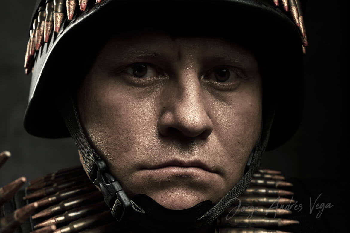Trabajo de Retoque en Photoshop agregando cabello, quitando imperfecciones en la madera, el escudo de seguridad, colorizando y reencuadrando la imagen.